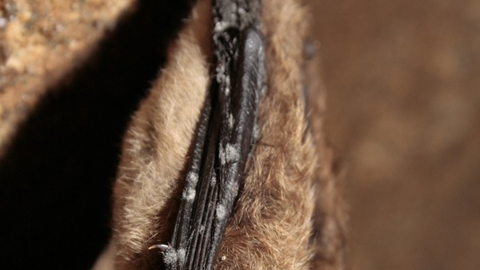 Les amateurs connaissent l’histoire sous le nom de syndrome du museau blanc : un champignon identifié en janvier sous le nom de Geomyces destructans. Il est le suspect numéro un, parce qu’on le retrouve dans toutes les cavernes où des chauves-souris mortes jonchent le sol, leurs museaux, leurs oreilles et leurs ailes envahis en partie par ce champignon blanc.