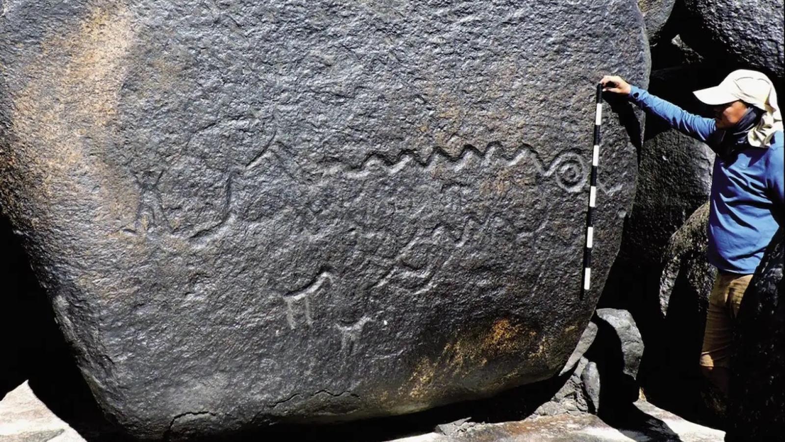 Lorsqu’il est question de dessins préhistoriques dans la pierre, on a coutume de penser aux gravures dans les cavernes d’Europe, ou à ces pétroglyphes vieux de quelques siècles ou quelques millénaires en divers endroits des Amériques. Or, ce sont presque toujours des représentations —d’animaux, d’humains, ou des figures géométriques— dont la taille fait moins d’un mètre. Avec leurs 40 mètres de long, ces serpents sont dans une catégorie à part.