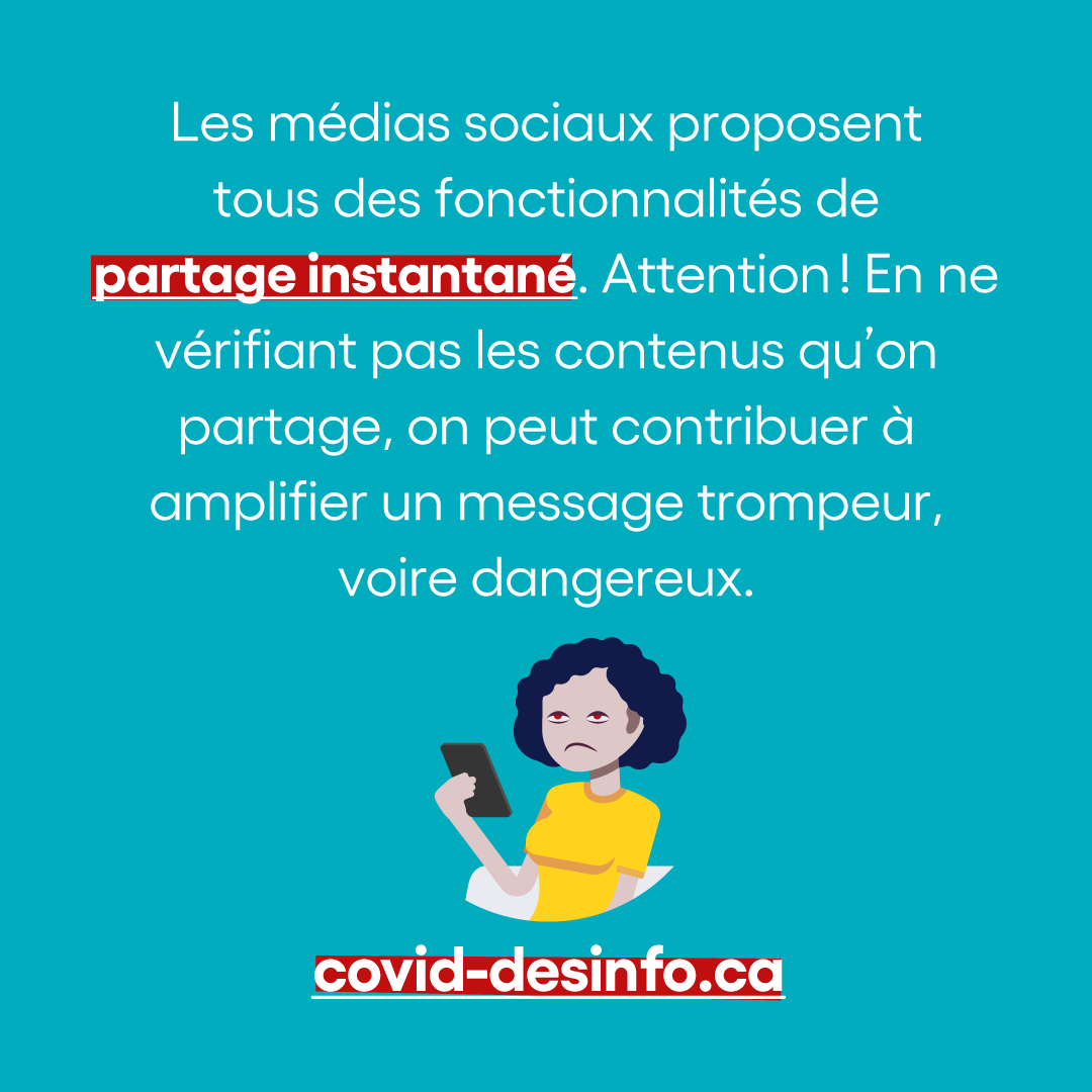 Les nouvelles sur la COVID-19, qu’elles soient vraies ou trompeuses, se diffusent rapidement... Et on doit une partie de leur popularité aux fonctionnalités de partages instantanées.