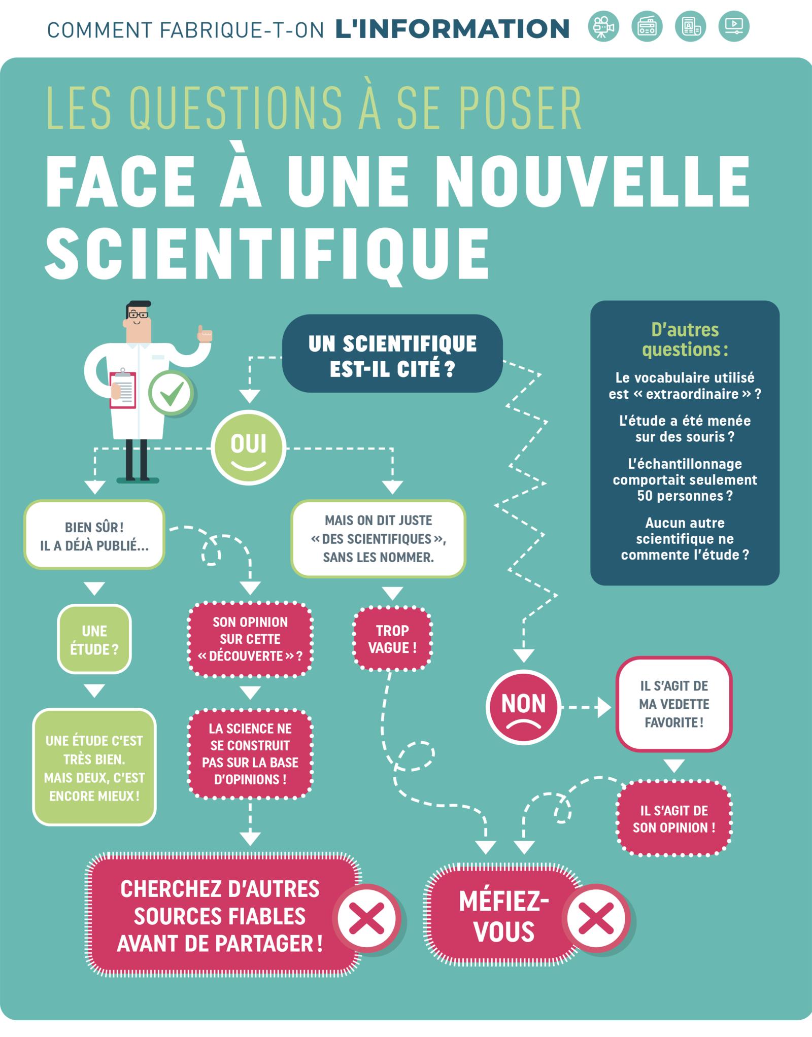 Ces courtes capsules, créées durant la pandémie de Covid-19 à l'intention des jeunes élèves, abordent de façon ludique différents éléments qui permettent d'évaluer la fiabilité de l'information.